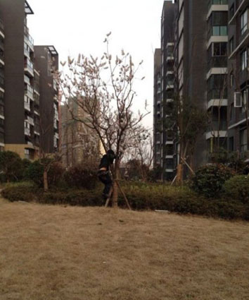 在該小區(qū),還有“熊孩子”玩起了爬樹(shù)。記者看到,該小區(qū)的樹(shù)木不算太大,樹(shù)干底部還用木樁進(jìn)行固定,顯然種下時(shí)間并不長(zhǎng),“熊孩子”們就這樣圍著樹(shù)爬上爬下,不但自身安全得不到保障,而且對(duì)樹(shù)木也會(huì)造成一定的損傷。