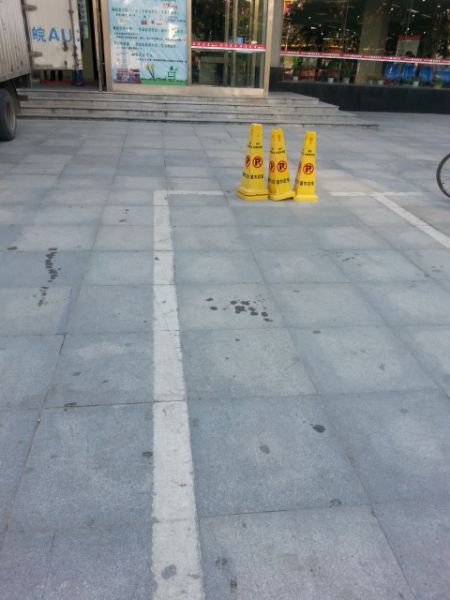 龍湖南路一商家門(mén)前停車位寧可空著,也不準(zhǔn)停車。