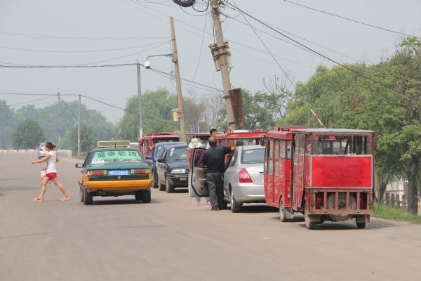 接電后,記者于7月8日上午來到了沿淮路,在輪船碼頭附近,記者遠(yuǎn)遠(yuǎn)就看見幾輛紅色的正三輪摩托車和幾輛私家車整齊地停靠在路邊,而這幾輛私家車中,竟然在前擋風(fēng)玻璃的位置,安裝了只有出租車才有的空車燈。于是記者裝作需要乘車和這些車主攀談,經(jīng)過了解,這些車輛在這里確實是用來營運的,主要是把從渡口下來的乘客拉到市區(qū)。