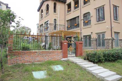 采訪中,記者發(fā)現(xiàn)一樓住戶侵占綠地、違規(guī)擴(kuò)院的現(xiàn)象在該小區(qū)內(nèi)很普遍,細(xì)數(shù)一下竟多達(dá)40余家。院子擴(kuò)建的規(guī)模有大有小,有的是將院子的鐵藝欄桿伸出一截,圈進(jìn)一部分公共綠化帶;有的則將院子前后的公共綠化樹木拔掉,種上蔬菜,變成私家菜園;有的砌上了磚混、鐵藝圍墻,在綠化帶里建起陽(yáng)光房,搭上防腐木架,圈成私家后花園;有的住戶還將院門擴(kuò)建到小區(qū)道路邊。