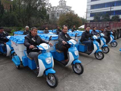 圖:26輛電動保潔車分發(fā)到各個(gè)鄉(xiāng)村(社區(qū))