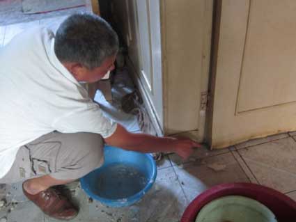 圖一:趙先生看著家中漏水嚴重顯得很無奈