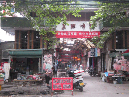 圖一:在東城市場東門、南門,懸掛的宣傳橫幅