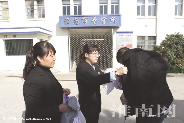 11月4日上午9時(shí),在淮南市看守所門口,幾個(gè)人手里拿著全新的衣物等待著。她們不是誰(shuí)的親戚,而是田家庵區(qū)法院少年法庭的法官們,正在等待因盜竊入獄,當(dāng)日刑滿釋放的小龍。她們到此正是為了迎接他的“新生”,同時(shí)也送上她們的愛(ài)心。