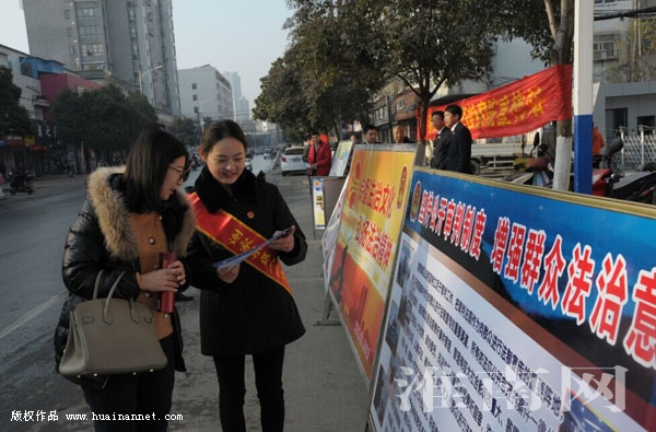 12月4日是國家憲法日,也是全國法制宣傳日,為響應“大力弘揚法治精神、協調推進四個全面戰(zhàn)略布局”的號召,當天下午,謝家集區(qū)法院法官走上街頭開展憲法日宣傳教育活動。法官們通過發(fā)放宣傳單、現場解答等方式向過往群眾宣傳憲法以及憲法相關法律、訴訟與非訴訟程序法等方面的法律法規(guī),并就群眾關心的法律常識提供現場講解;顒又校ü賯児舶l(fā)放各種普法資料500余冊,現場解答法律咨詢40多人次,受到群眾的廣泛好評。