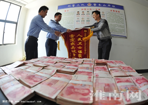 5月17日,淮南市公安局田家庵分局民警將查獲詐騙的28.5萬(wàn)元現(xiàn)金返還給受害人。