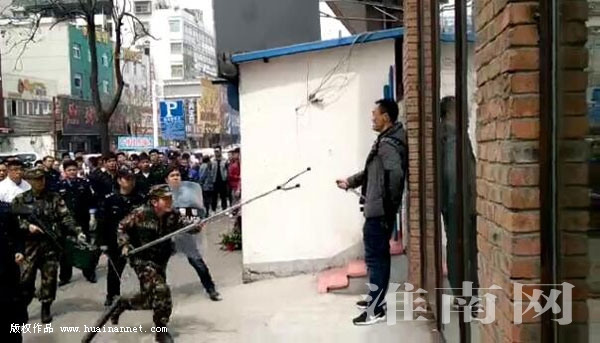 當(dāng)天上午10時(shí)許,正在商貿(mào)步行街開展武裝巡邏的市公安局特警支隊(duì)四大隊(duì)民警接到110指揮中心增援警令,立即前往學(xué)院路抓捕在逃販毒嫌疑人鄭某。警情如山,接到指令后,特警支隊(duì)四大隊(duì)大隊(duì)長趙侃即刻向支隊(duì)值班領(lǐng)導(dǎo)朱玉波匯報(bào),指派教導(dǎo)員楊軍前往現(xiàn)場(chǎng)處置,并調(diào)集了八名特警隊(duì)員和武警組成抓捕小組,火速趕至事發(fā)地。在現(xiàn)場(chǎng),販毒嫌疑人鄭某背靠一家網(wǎng)吧的墻壁,手持一把一尺多長的軍刺和一把匕首,神情激動(dòng),不斷向警方挑釁:“敢過來我就跟你們拼命!”當(dāng)天,謝家集公安分局唐山派出所民警經(jīng)過跟蹤摸排,發(fā)現(xiàn)網(wǎng)上在逃販毒嫌疑人鄭某在學(xué)院路出現(xiàn),正準(zhǔn)備抓捕時(shí),鄭某察覺持刀與警方對(duì)峙。已趕到現(xiàn)場(chǎng)的特警、武警、田區(qū)巡防大隊(duì)民警立刻疏散圍觀群眾,組成聯(lián)合抓捕組并進(jìn)行了分工,形成對(duì)鄭某的控制合圍。