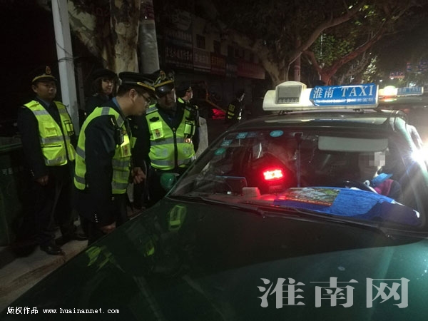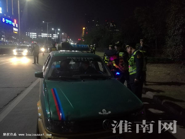 圖二:聯(lián)合交警部門在淮河新城附近路段設(shè)卡檢查過往出租車(記者 張明星 編輯 湯寧)