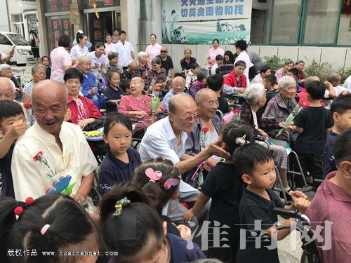 上午9時許,淮河早報、淮南網(wǎng)記者趕到東方家園老年公寓時,現(xiàn)場一片歡聲笑語。來自太陽花幼兒園的40多名小朋友正在給這里的爺爺奶奶表演節(jié)目《小太陽》,童稚的歌聲伴著孩子們?nèi)の兜谋硌葑尷先藗兏惺艿搅藴嘏。表演完?jié)目,孩子們還給老人們送上了鮮花、月餅等禮品,為老人捶背、梳頭,許多老人感動得熱淚盈眶。隨后,信宜物業(yè)的員工為老人們表演了合唱《感恩的心》,志愿服務(wù)中心的志愿者還給老人們免費理發(fā),現(xiàn)場涌動一股暖流。