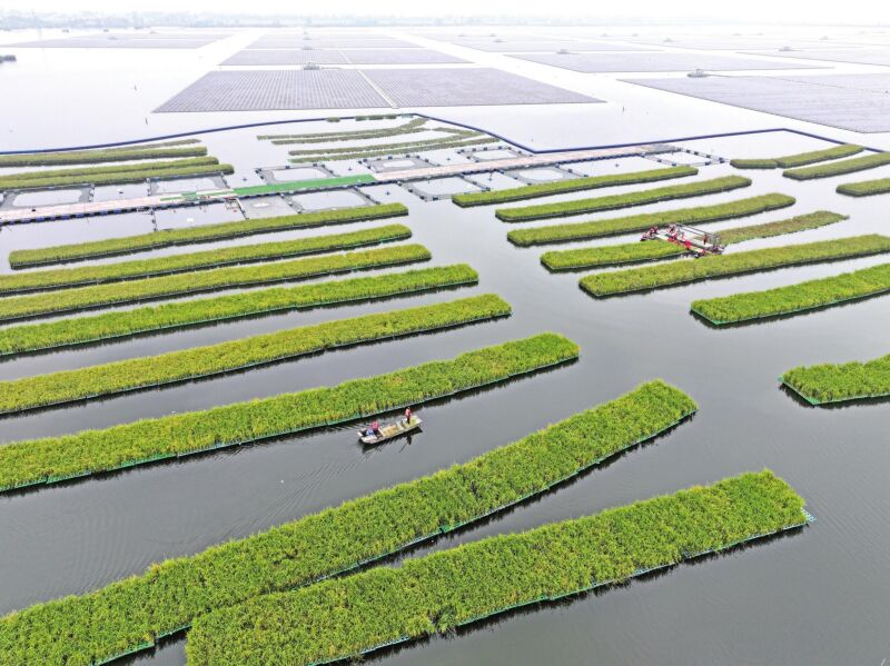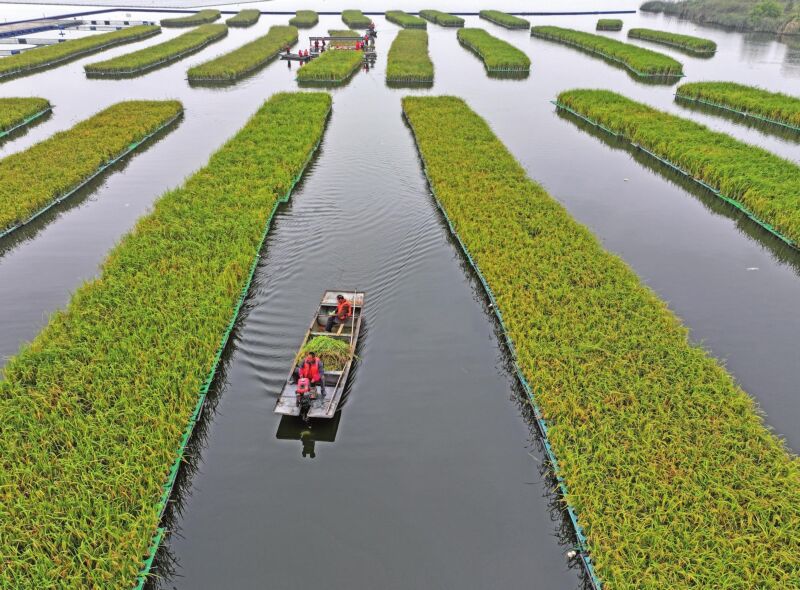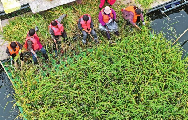 近日,安徽省淮南市鳳臺縣顧橋鎮(zhèn)采煤沉陷區(qū)50畝漂浮式水稻迎來豐收。當?shù)胤e極探索采煤沉陷區(qū)綜合治理開發(fā)利用,在采煤沉陷區(qū)推行水面漂浮水稻種植、水下網(wǎng)箱養(yǎng)魚、水上光伏電站等多種發(fā)展模式,科學(xué)利用好采煤沉陷區(qū)。