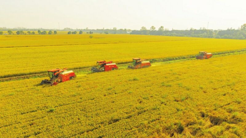 目前,淮南各地正值秋收,廣袤的田野上一片繁忙。聯(lián)合收割機(jī)在金色稻浪中穿梭,農(nóng)民們搶抓晴好天氣搶收糧食,確保顆粒歸倉,臉上洋溢著豐收的喜悅。