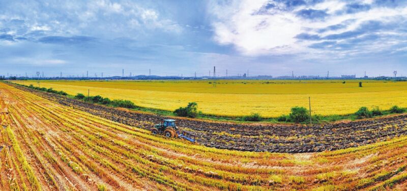 初冬時節(jié),淮南農(nóng)場的田野上一派繁忙景象。農(nóng)戶們搶抓晴好天氣,駕駛著農(nóng)機在田間來回穿梭,翻犁土地、播種冬小麥,一道道新翻的田壟在陽光下延伸,播下來年豐收的希望。