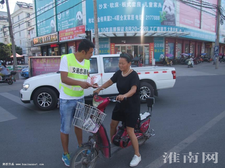 當日上午9時,交通志愿者們身穿志愿者標志反光背心來到長江路天柱山路口、紅旗樓路口以及九華山路口向行人發(fā)放宣傳材料,宣傳交通法規(guī),對行人橫穿馬路、亂闖紅燈等不文明行為進行教育引導,并對違反交通規(guī)則的行人進行勸阻,糾正其不文明行為。志愿者們攙扶老人過斑馬線、勸導非機動車輛按道行駛,教育引導市民遵守交通法規(guī),文明行路、文明行車。